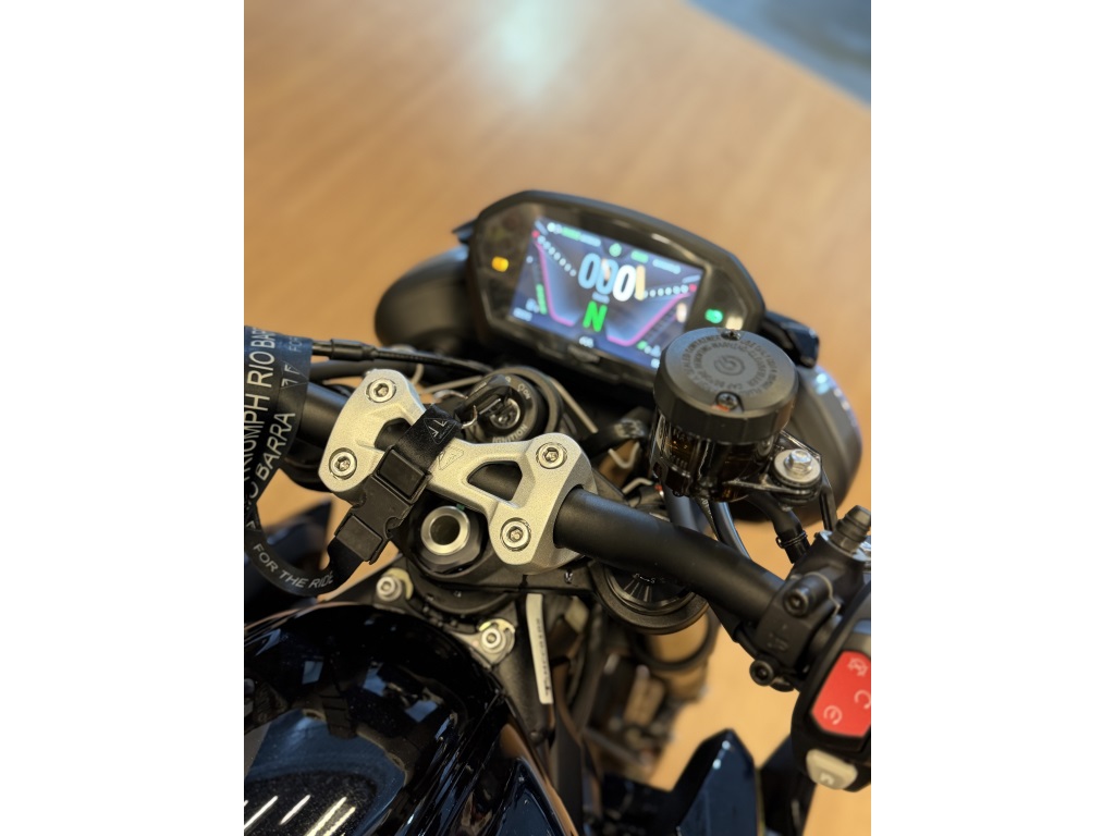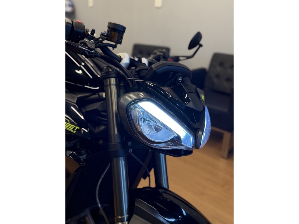 Triumph 2025Modelo Street triple 765 RS Top da categoria E modos de pilotagem Painel 100% TFTFreios Brembo Quick Shifter pro ( para cima e para baixo ) Apenas 2.600 kms rodados Suspensão ajustável dianteira e traseira Slider de motor Monoposto de fábrica motor com 130 cv de potênciaIPVA 2026 pago e emplacamento grátis
